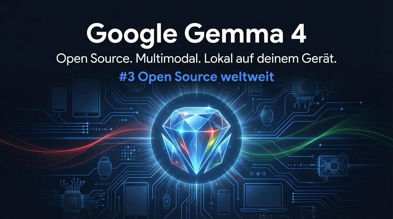 Google DeepMind hat am 2. April 2026 die Gemma-4-Modellfamilie veröffentlicht. Vier KI-Modelle, komplett quelloffen unter der Apache-2.0-Lizenz, die direkt auf Smartphones, Laptops und sogar einem Raspberry Pi laufen. Das Flaggschiff-Modell belegt aktuell Platz 3 unter allen Open-Source-Modellen auf dem Arena-AI-Leaderboard.